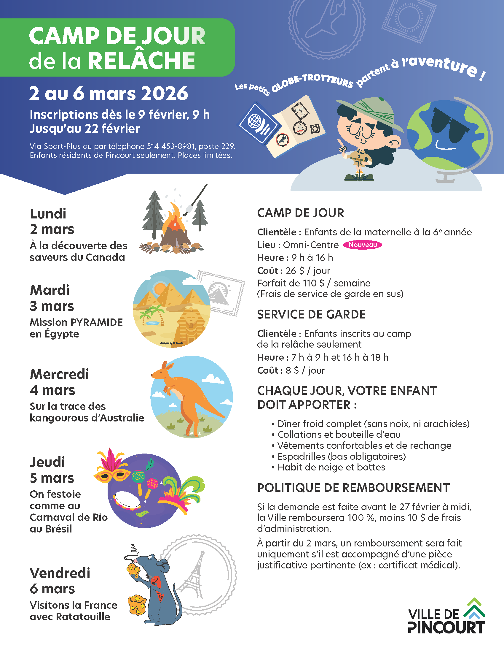 Camp de la relâche 2026 Thématique 2026 : LES PETITS GLOBE-TROTTEURS PARTENT À L'AVENTURE